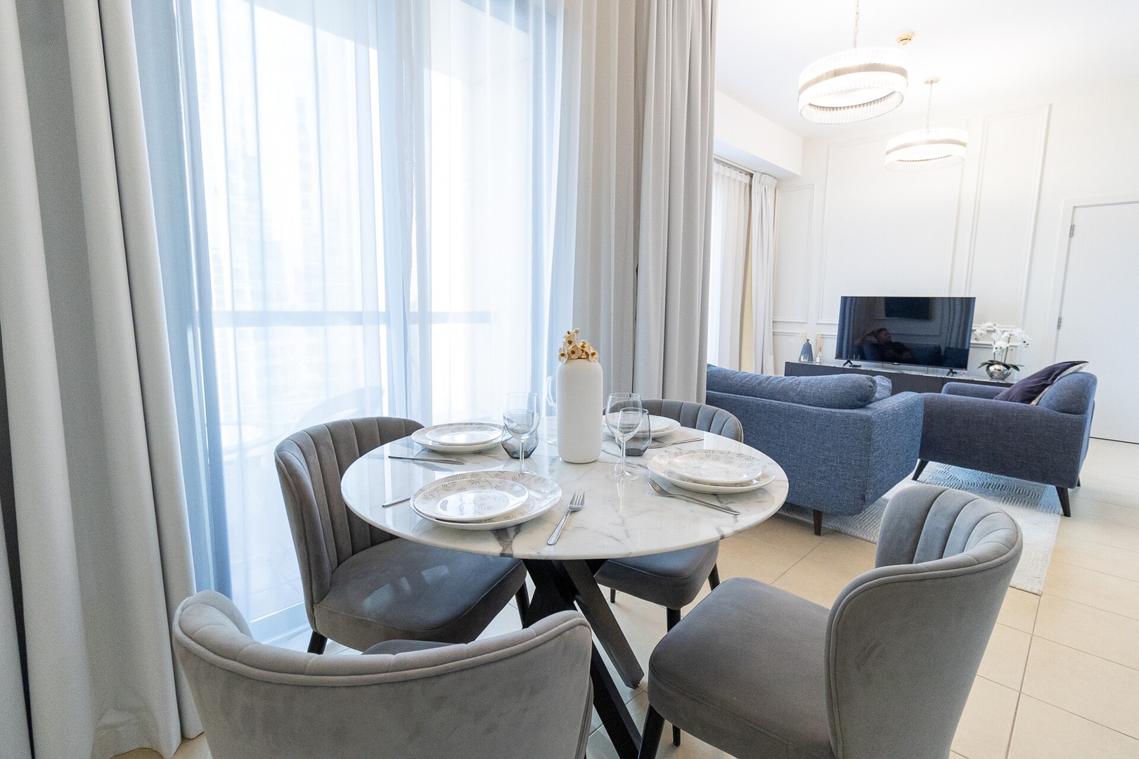 House rules include respecting the neighbours, furniture and no Parties whatsoever. Smoking allowed only on the outside terrace. Adherence to Dubai laws and regulations at all times.